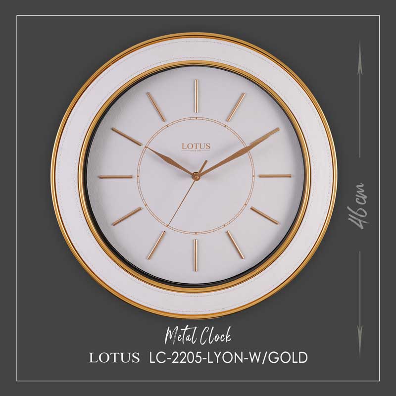 ساعت دیواری فلزی LYON کد LC-2205 رنگ WHITE/GOLD