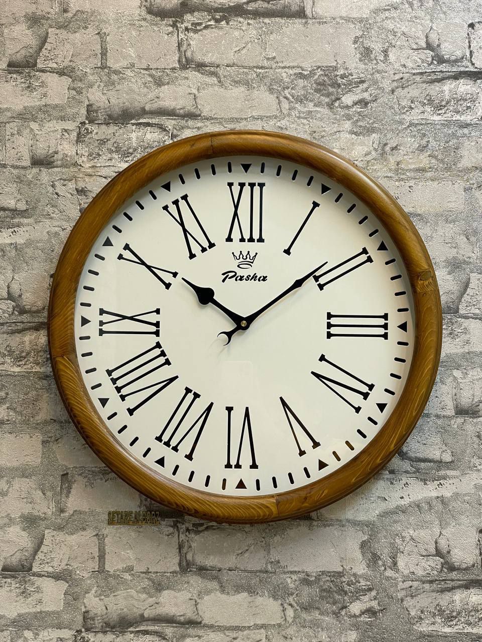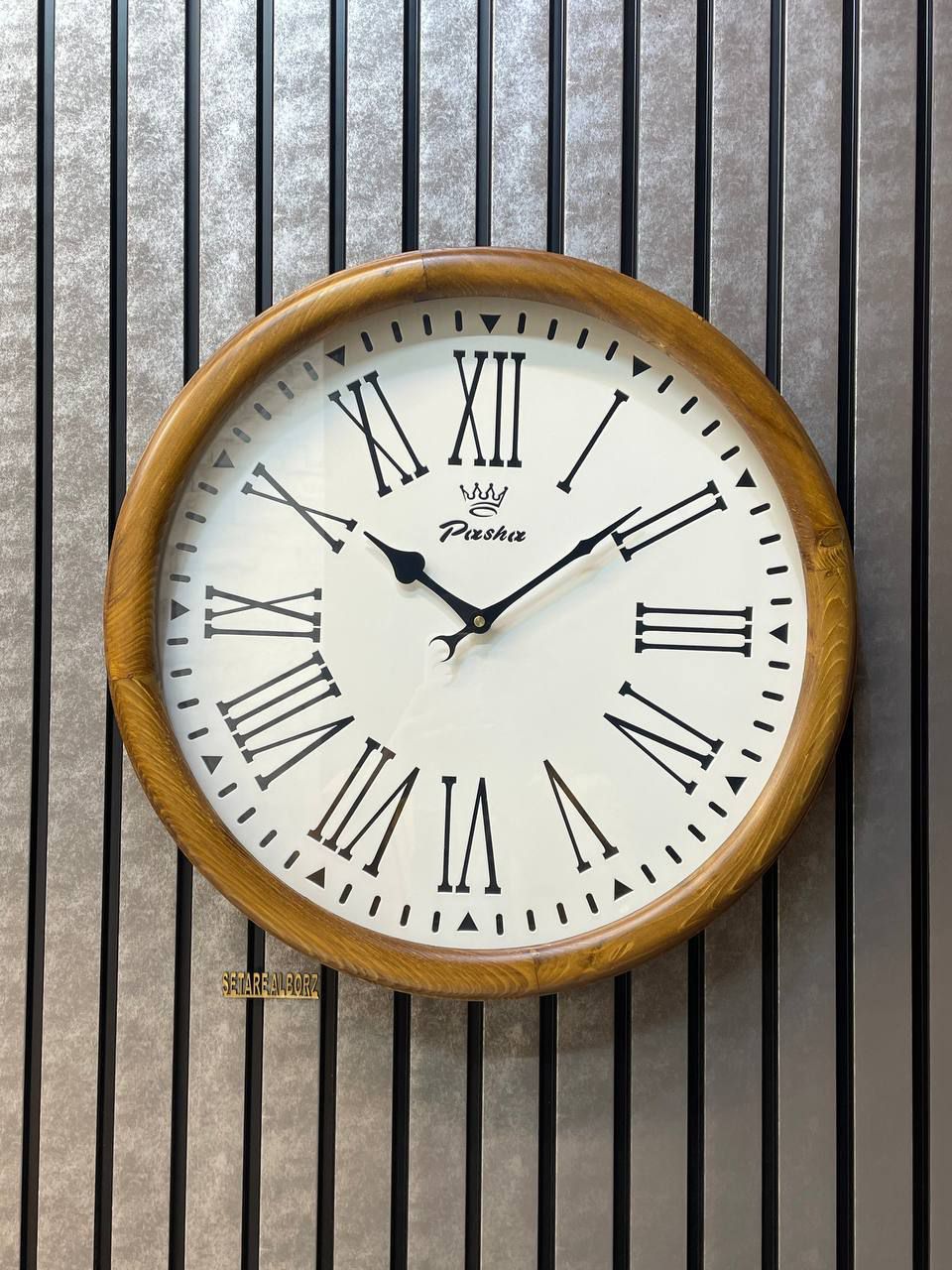ساعت دیواری گرد، ترکیبی از زیبایی کلاسیک و مدرنیته است. صفحه سفید با اعداد یونانی مشکی، همراه با قاب چوبی طبیعی، حس گرما و اصالت را به هر فضایی می‌بخشد.