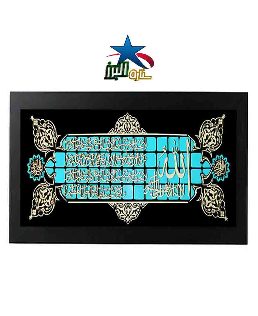 One and the same quadrilateral islamic poem, Hamad Tawhid Yas Val-e’zr Salavat, and five names and names of the prophets of Turquoise leather and cashmere mosaic.