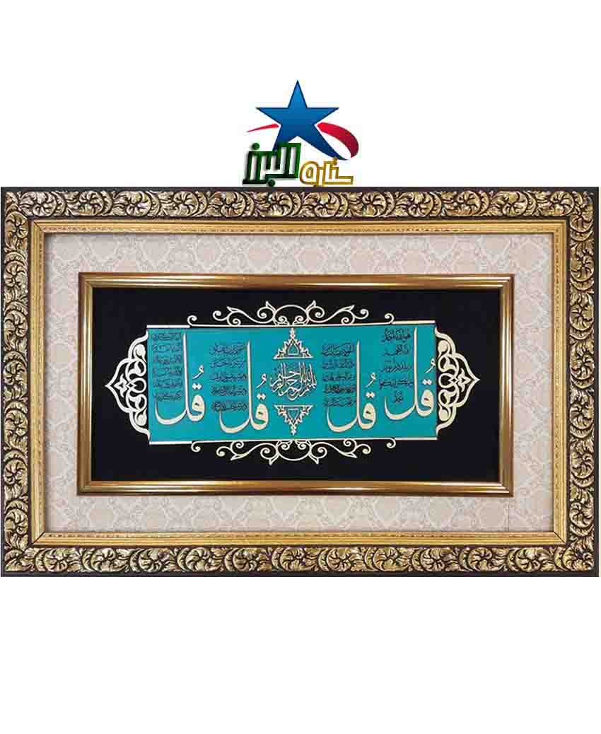 One and the same quadrilateral islamic poem, Hamad Tawhid Yas Val-e’zr Salavat, and five names and names of the prophets of Turquoise leather and cashmere mosaic.